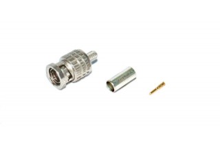 Кабельный разъем BNC для аналоговых и цифровых видеосигналов HD-SDI, серия BCP-A, <штекер/папа>, металлический никелированный корпус, центральный контакт - покрытие золото, под обжим, 75 Ом. Совместим с кабелем Canare L-3C-AHD