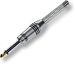 разъем Jack 6.3 мм моно, с золотым покрытием контактов, под пайку, для кабеля внешним диаметром до 7.0 мм, хвостовик в виде пружины