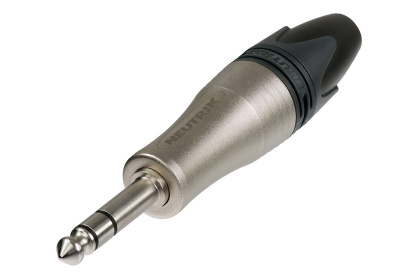 Кабельный разъем 1/4" Jack 6.35 мм, профессиональный, 3-х контактный (стерео) <штекер/папа>, металлический никелированный корпус, контакты - покрытие никель, под пайку, зажимной патрон, увеличенный полиуретановый колпачок черного цвета, подходит для проводов сечением до 1 мм2 (AWG 18), на кабель диаметром до 10.0 мм.