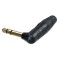 Кабельный угловой разъем Стерео. Разъем JACK 1/4" (6.3 мм) угловой стерео <папа> для установки на кабель диаметром 4-7 мм. Чёрный корпус, позолоченные контакты.