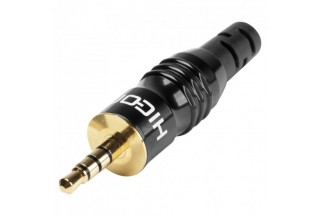 HICON HI-J35T02, 4-контактный 3,5 мм jackplug с золотым покрытием, макс. диаметр кабеля 8,4 мм, черный корпус