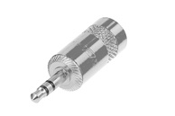 3-х контактный (Стерео) разъём miniJack "папа", металлический хромированный корпус, для установки на кабель большого диаметра