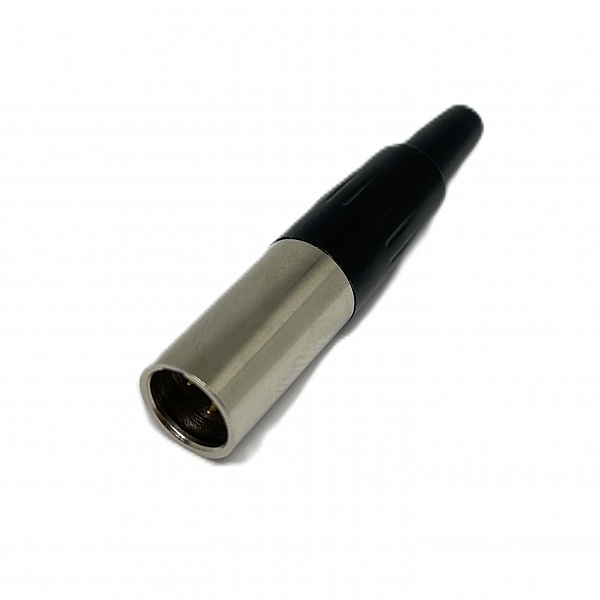 3-х пиновый кабельный разъём miniXLR "папа". Позолоченный контакты. Повышенная защита от электромагнитного излучения. В комплекте две цанги для фиксации кабелей разных диаметров.