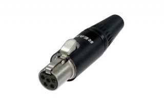 5-ти пиновый кабельный разъём miniXLR "мама". Позолоченный контакты. Повышенная защита от электромагнитного излучения. В комплекте две цанги для фиксации кабелей разных диаметров.