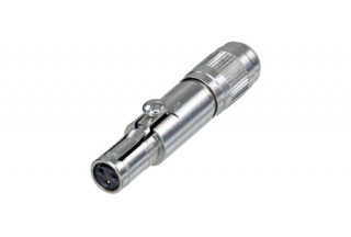 Кабельный разъем mini-XLR, 3-х контактный <гнездо/мама>, nanoCON-серия. Находит свое применение в медицинское оборудовании, системах управления, подходит для миниатюрных и беспроводных микрофонов и переносных микшеров. Компактный промышленный металлический никелированный корпус, блокирующее устройство, контакты - покрытие золото, под пайку, зажимной патрон, подходит для проводов сечением 0.2-0.14 мм2 (AWG 24-26), на кабель диаметром до 3.4 мм.