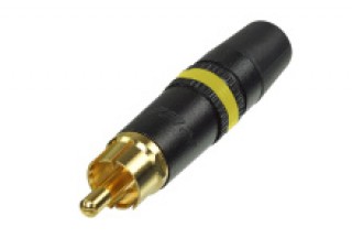 кабельный разъём RCA "папа", металлический корпус, позолоченные контакты, маркировочное кольцо жёлтого цвета
