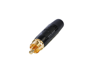 кабельный разъём RCA "папа", металлический корпус чёрного цвета, позолоченные контакты, резиновый хвостовик чёрного цвета