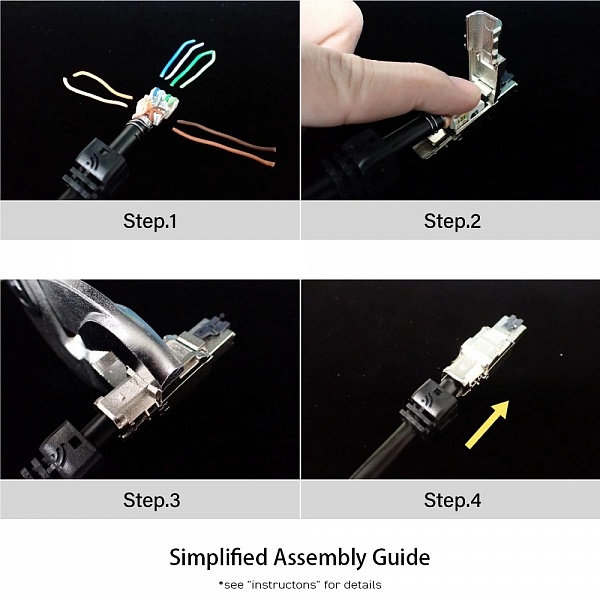 Модульный штекер RJ45 для быстрой установки в полевых условиях и монтируется без специальных инструментов.