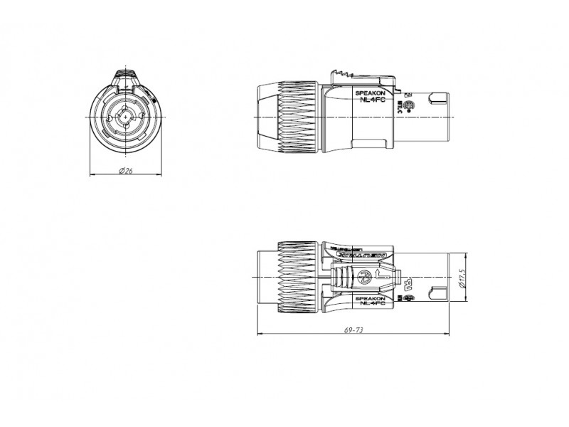 4-х контактный кабельный разъём speakON "мама" серии "FC".