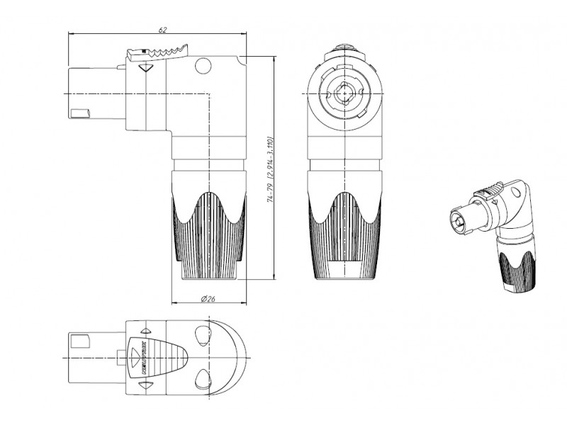 4-х контактный кабельный угловой разъём speakON "мама" серии "SPX".