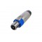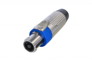 Кабельный разъем SPEAKON для подключения громкоговорителей / усилиптелей, туровое применение, 4-х контактный <гнездо/мама>, прочный влагостойкий металлический корпус, класс защиты (IP 54), надежная фиксация блокировки, контакты - покрытие серебро, под пайку, зажимной патрон, черный колпачок, подходит для проводов сечением до 6.0 мм2 (AWG 10), рабочее напряжением 250 В / ток 40 А, на кабель диаметром (9.0-16.0 мм).