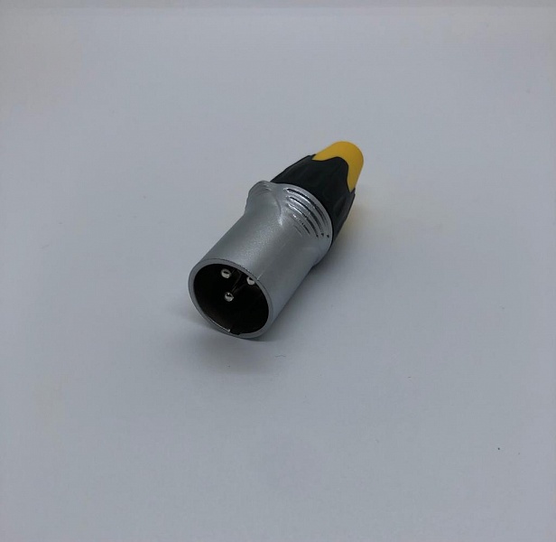 Кабельный разъем XLR, 3-х контактный <штекер/папа>, А-серия, металлический никелированный корпус, контакты - покрытие серебро, под пайку, зажимной патрон, черно-желтый хвостовик (доступно 2- цвета, красный и черный), на кабель диаметром до 8.0 мм