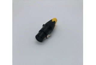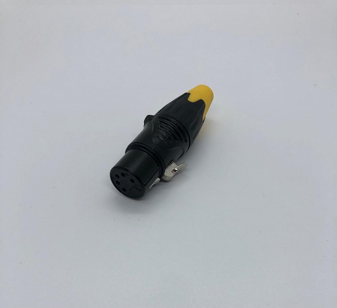 Кабельный разъем XLR, 5-и контактный <гнездо/мама>, А-серия, черный металлический корпус, контакты - покрытие золото, под пайку, зажимной патрон, черно-желтый хвостовик (доступно 2- цвета, красный и черный), на кабель диаметром до 8.0 мм