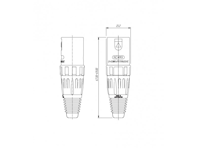 3-х пиновый кабельный разъём XLR "папа" серии "XCC". Предназначен для цифрового аудио сигнала AES/EBU (AES3). Повышенная защита от радиоизлучения.