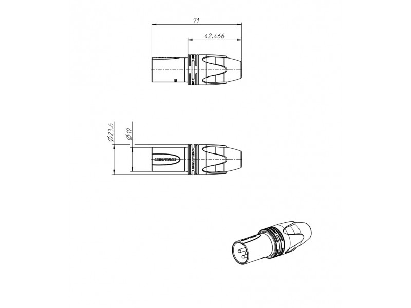 3-х пиновый кабельный разъём XLR "папа" серии "XX", для наружного применения. Защита всех металлических частей разъема от пыли и влаги, осуществляется резиновым кожухом, при коммутации с ответными разъемами кабельными серии - XX-HD или панельными MPR-HD. Защита соответсвует классу IP 67.