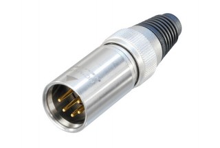 Кабельный разъем XLR, 5-и контактный <штекер/папа>, X-HD серия, "сверхпрочный", влагозащищенный (IP 65), корпус из нержавеющей стали, все элементы конструкции маталлические, контакты - покрытие золото, под пайку, зажимной патрон, полиуретановый колпачок на кабель диаметром (3.5-8.0 мм).