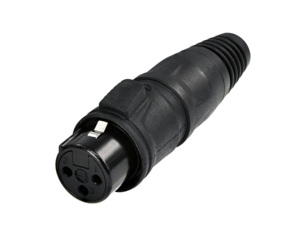3-х пиновый кабельный разъём XLR "мама" пылевлагозащищённость класса IP65. Корпус чёрный. контакты позолоченные.