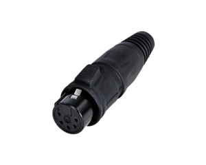 5-ти пиновый кабельный разъём XLR "мама" пылевлагозащищённость класса IP65. Корпус чёрный. контакты позолоченные.