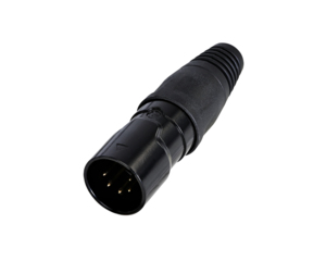5-ти пиновый кабельный разъём XLR "папа", пылевлагозащищённость класса IP65. Корпус чёрный. контакты позолоченные.