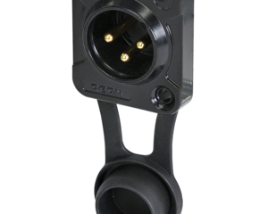 3-х пиновый панельный разъём XLR "папа", чёрный корпус, позолоченные контакты. Разъём D - фланца обеспечивает класс защиты IP65. Степень защиты IP65 обеспечивается при соединении с соответствующим разъемом REAN IP65 или с закрытым резиновым колпачком