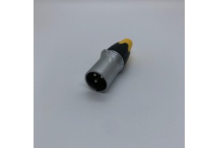 Кабельный разъем XLR, 3-х контактный <штекер/папа>, А-серия, металлический никелированный корпус, контакты - покрытие серебро, под пайку, зажимной патрон, черно-желтый хвостовик (доступно 2- цвета, красный и черный), на кабель диаметром до 8.0 мм