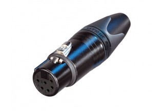 Кабельный разъем XLR, 6-и контактный <гнездо/мама>, X-серия, черный хромированный металлический корпус, контакты - покрытие серебро, под пайку, зажимной патрон, полиуретановый колпачок на кабель диаметром (3.5-8.0 мм).