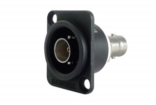 панельный, проходной <мама/мама>, с фланцем D типа. Подходит для сигналов 12G SDI, 4K. Корпус черного цвета.