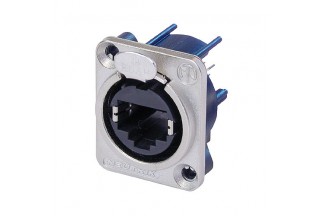 панельный разъём etherCON, фланец D типа. Вертикальный монтаж на печатную плату. Cat. 5E.