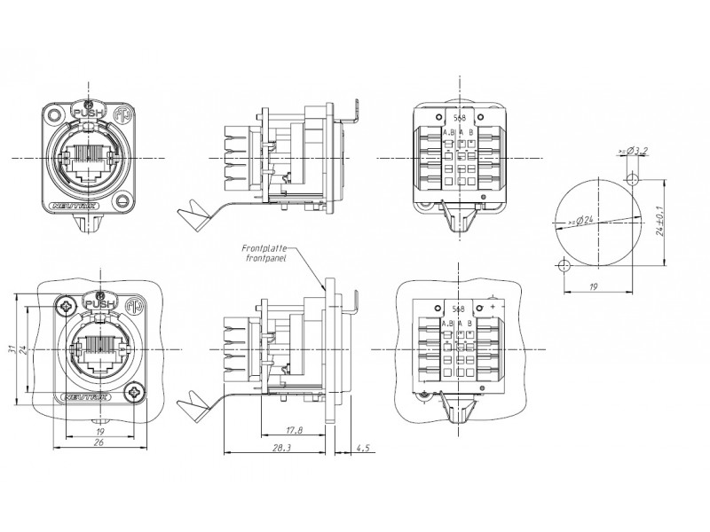 Соответствует стандартам TIA/EIA 568B и ISO/IEC 11801 . Для использования в LAN соединениях ( EtherNET ) , RJ45 / 8P8C . Устанавливается в панель . Прочный металлический корпус . Под зажим провода IDC . Кнопка-фиксатор позволяет надежно удерживать контактирующий с ним кабель / патч корд .