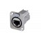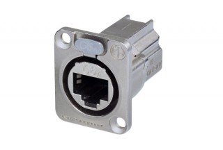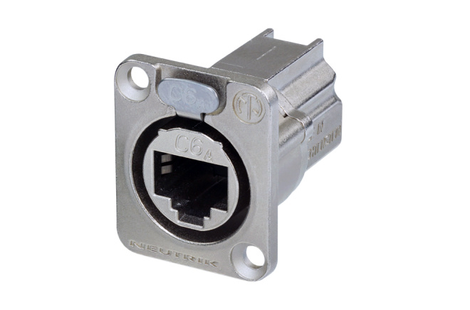 панельный проходной разъем RJ-45 CAT 6A, фланец D-типа. Экранированный, корпус никелированный.