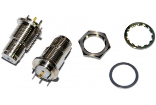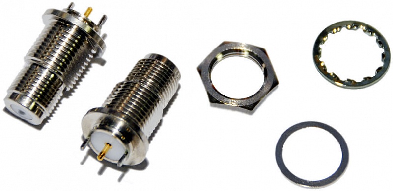 Панельный разъём F-типа "мама", для установки на печатную плату "прямо", крепление с помощью лицевой гайки