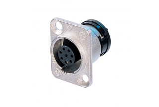 Панельный разъем, 8-и контактный <гнездо/мама>, разработаны для многопрофильных / промышленных применений, пылезащитный прочный никелевый корпус, класс защиты (IP 5X), контакты - покрытие золото, под пайку, подходит для проводов сечением до 1.0 мм2 (AWG 18).