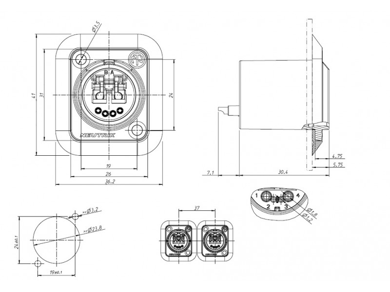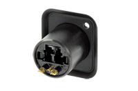 один оптический дуплексный разъём LC и четыре электрических контакта. Чернёный фланец "D" типа. Заземление на корпус.