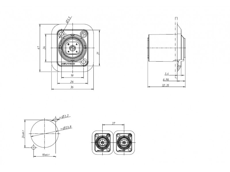 4-х канальный разъём LC . Чернёный фланец "D" типа.