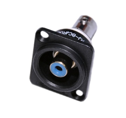 панельный <мама>, чернёный фланец D типа, с тыльной стороны BNC <мама>, синий маркер