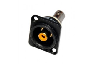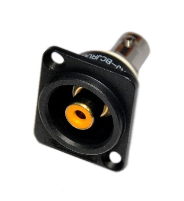 панельный <мама>, с чернённым фланцем D типа, с тыльной стороны BNC <мама>, жёлтый маркер