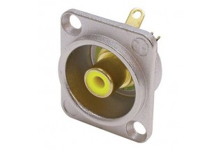 Панельный разъём RCA (тюльпан), никелированный фланец "D" типа, тыльная сторона под пайку, цвет разъема - желтый