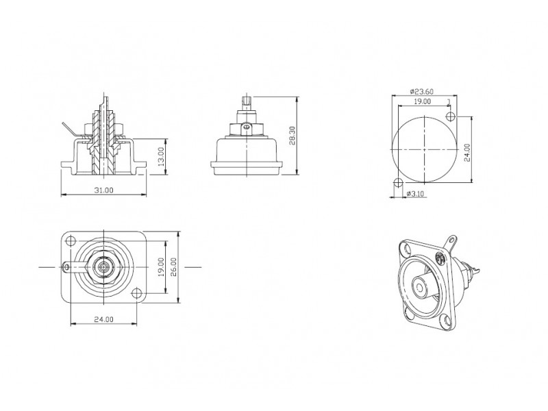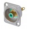 Панельный разъём RCA (тюльпан), никелированный фланец "D" типа, тыльная сторона под пайку, цвет разъема - зеленый