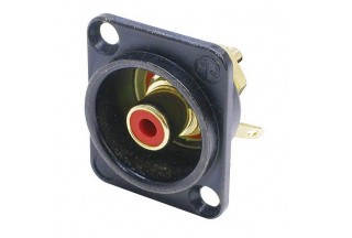 Панельный разъём RCA (тюльпан), чернёный фланец "D" типа, тыльная сторона под пайку, цвет разъема - красный