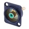 Панельный разъём RCA (тюльпан), чернёный фланец "D" типа, тыльная сторона под пайку, цвет разъема - зеленый
