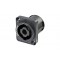Панельный разъем SPEAKON серии XX, для подключения громкоговорителей / усилителей, 2-х контактный <штекер/папа>, прочный корпус из термопластика, фланец D-типа, вертикальная установка PCB, надежная поворотная система блокировки, оптимизирован для использования в динамиках, контакты - покрытие серебро, рабочее напряжение 250 В / ток 25 А, под пайку, соответствует стандарту IEC 62368-1. Не совместим с кабельными 4-х контактными разъемами SPEAKON.