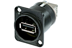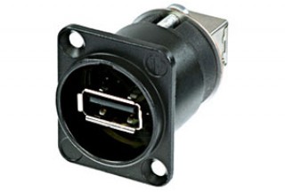проходной USB разъём. Версия USB 2.0. Взаимозаменяемый A/B. Чернёный фланец "D" типа.