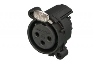 Панельный разъем XLR, 3-х контактный <гнездо/мама>, А-серия, фланец А-типа, горизонтальная установка PCB, компактный пластиковый корпус, заземление: без заземляющего контакта, контакты - покрытие золото, под пайку.