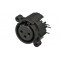 Панельный разъем XLR, 3-х контактный <гнездо/мама>, А-серия, фланец А-типа, боковая правая установка PCB, компактный пластиковый корпус, заземление: контакт 1 - на массу и на корпус ответного разъема, удерживающая пружина вместо защелки, контакты - покрытие золото, под пайку.