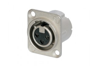 Панельный разъем XLR, 3-х контактный <гнездо/мама>, DLX-серия, фланец D-типа, компактный металлический никелированный корпус с двойным заземляющим контактом, обеспечивающий отличную защиту от RF, идеальное сочетание с кабельными разъемами серии EMC, контакты - покрытие серебро, удерживающая пружина вместо защелки, под пайку.