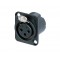 Панельный разъем XLR, 3-х контактный <гнездо/мама>, DLX-серия, фланец D-типа, черный компактный хромированный металлический корпус с двойным заземляющим контактом, обеспечивающий отличную защиту от RF, идеальное сочетание с кабельными разъемами серии EMC, контакты - покрытие серебро, под пайку.