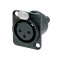Панельный разъем XLR, 3-х контактный <гнездо/мама>, DL-серия, фланец D-типа, черный хромированный металлический корпус, рассчитан для монтажа кабелей с диапазоном проводов от 0,14 мм² до 0,5 мм² (AWG 26 -20), контакты - покрытие золото, под винтовые клеммы.