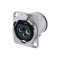 Панельный разъем XLR, 3-х контактный <гнездо/мама>, D-серия, фланец D-типа, вертикальная установка PCB, металлический никелированный корпус, контакты - покрытие серебро, под пайку.