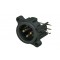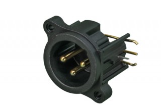 Панельный разъем XLR, 3-х контактный <штекер/папа>, А-серия, фланец А-типа, боковая правая установка PCB, корпус из термопластика, заземление: отдельный контакт заземления соединен с корпусом разъема и заземлением панели установки, контакты - покрытие золото, под пайку.