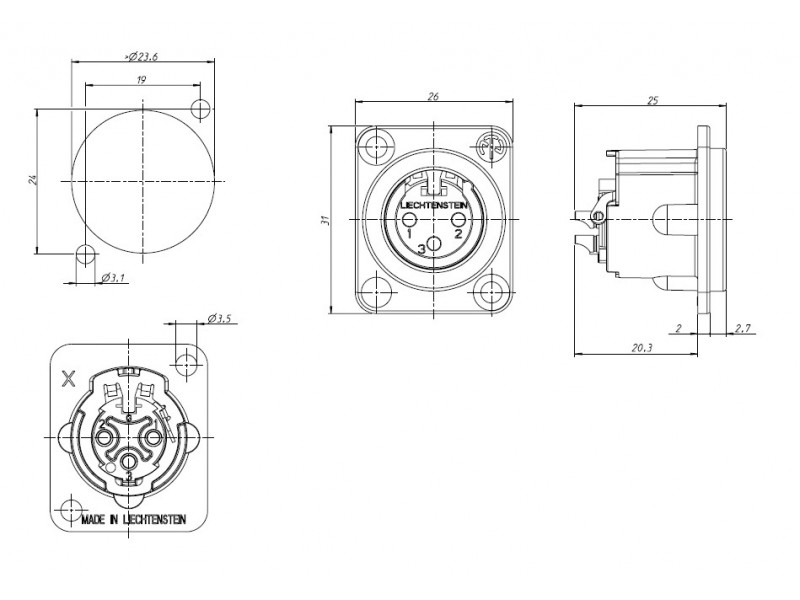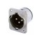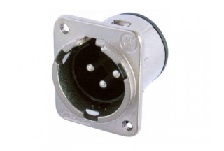 3-х пиновый панельный разъём XLR "папа". Никелированный фланец "D" типа. Повышенная защита от радиоизлучения.